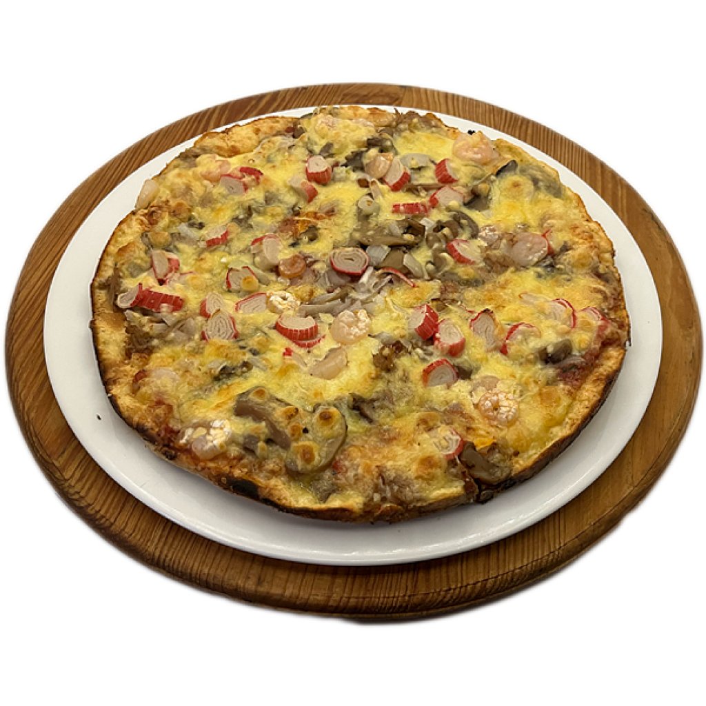 základ, sýr, olejovky, tuňák (konzervovaný), krabí maso, cibule, žampiony (konzervované), krevety